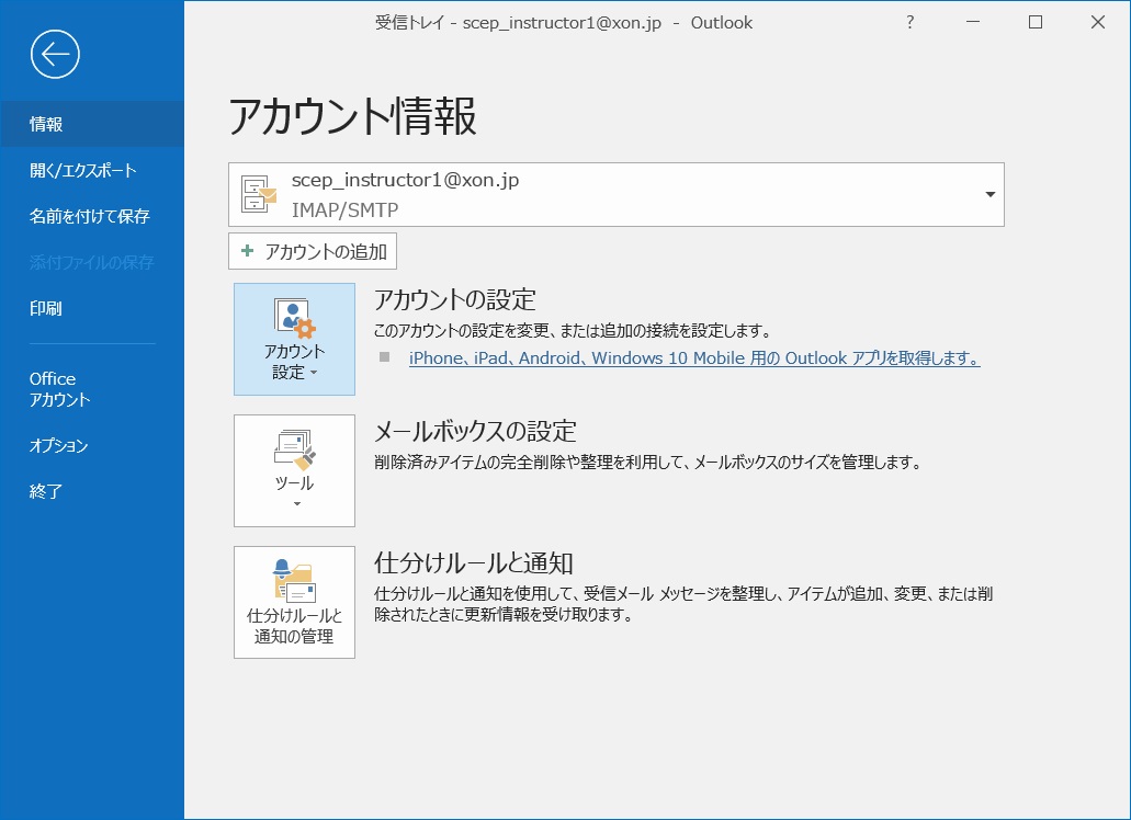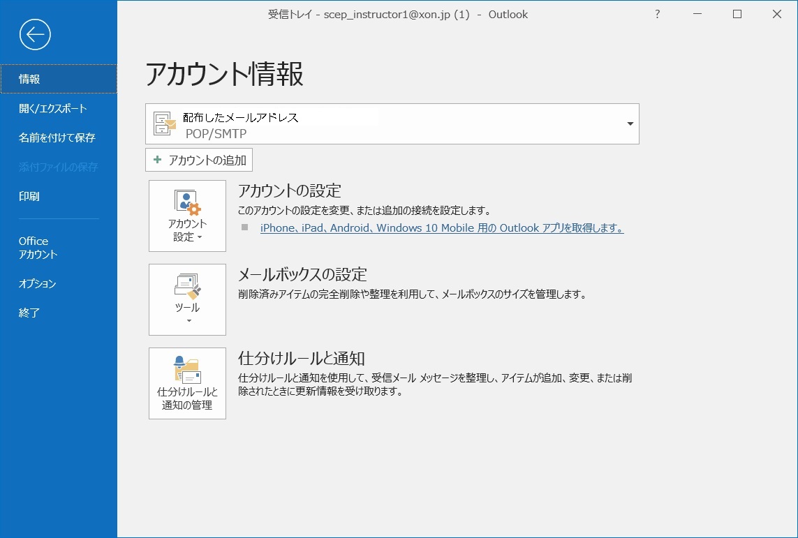 Outlookの設定の【4. Outlookへようこそ】から進める。