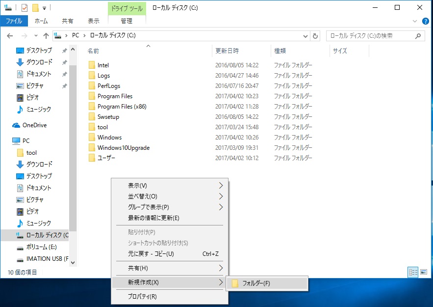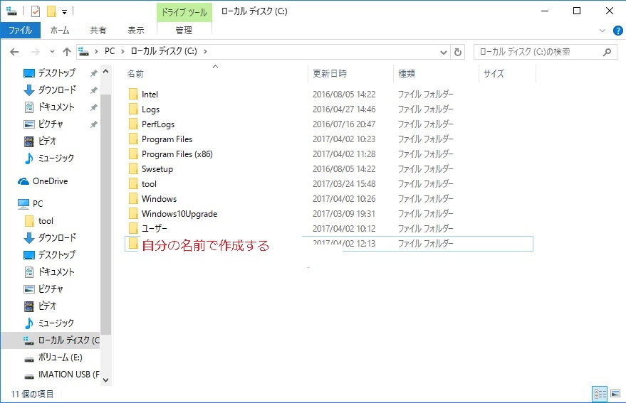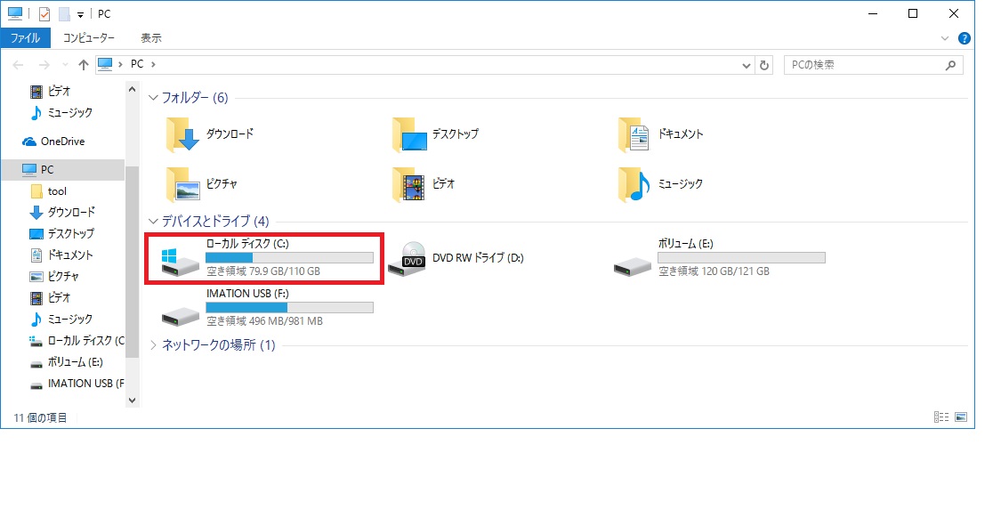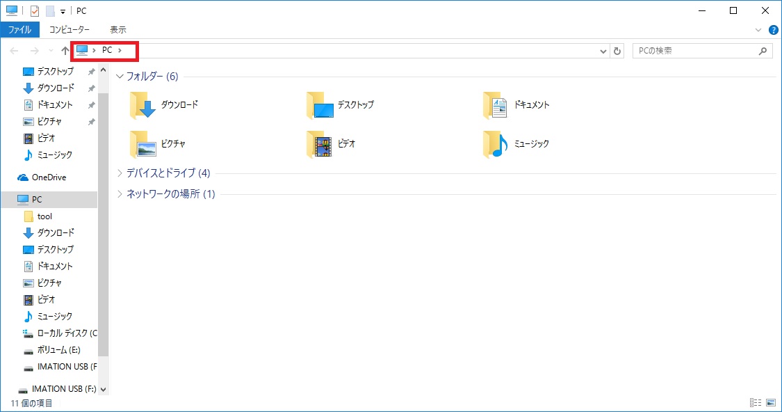 再度キーボードのウィンドウズキー + E を打鍵し、エクスプローラーを表示する。