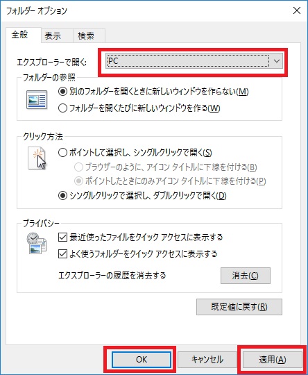 【適用】ボタンをクリック ⇒ 【OK】ボタンをクリックする。